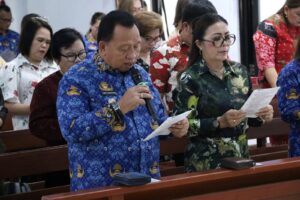 MINAHASA — Pemerintah Kabupaten (Pemkab) Minahasa resmi mengawali rangkaian Safari Natal 2025 dengan penuh khidmat dan sukacita iman. Kegiatan perdana yang menghimpun jemaat dari Kecamatan Tombulu, Pineleng, Mandolang, Tombariri, dan Tombariri Timur ini dipusatkan di GMIM Petra Sawangan, Senin (01/12) pagi.