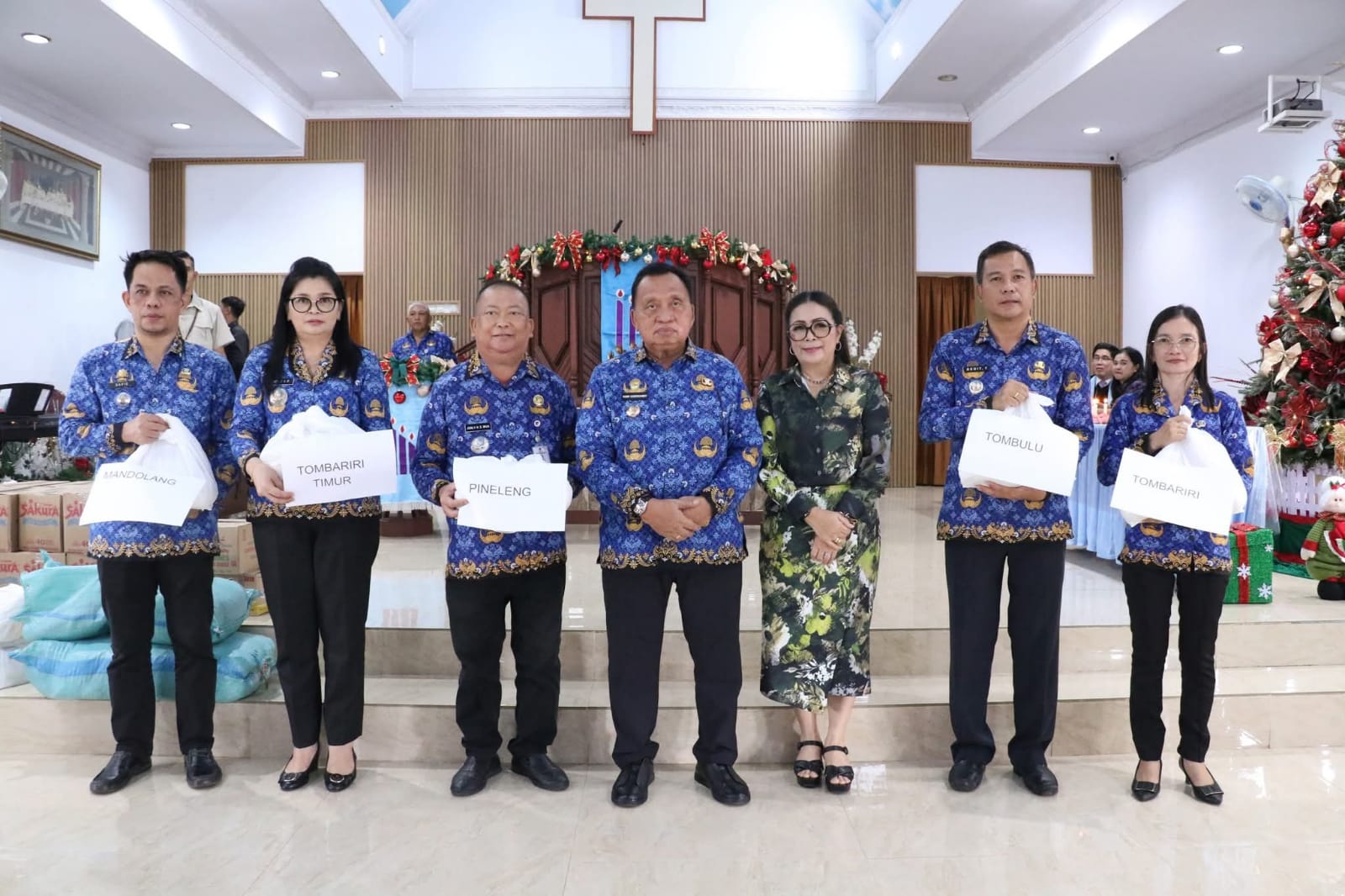 Di akhir ibadah, Pemkab Minahasa menyerahkan bantuan dan Diakonia Natal bagi warga kurang mampu dan anak-anak stunting sebagai wujud nyata kepedulian dan kasih Natal bagi masyarakat yang membutuhkan.